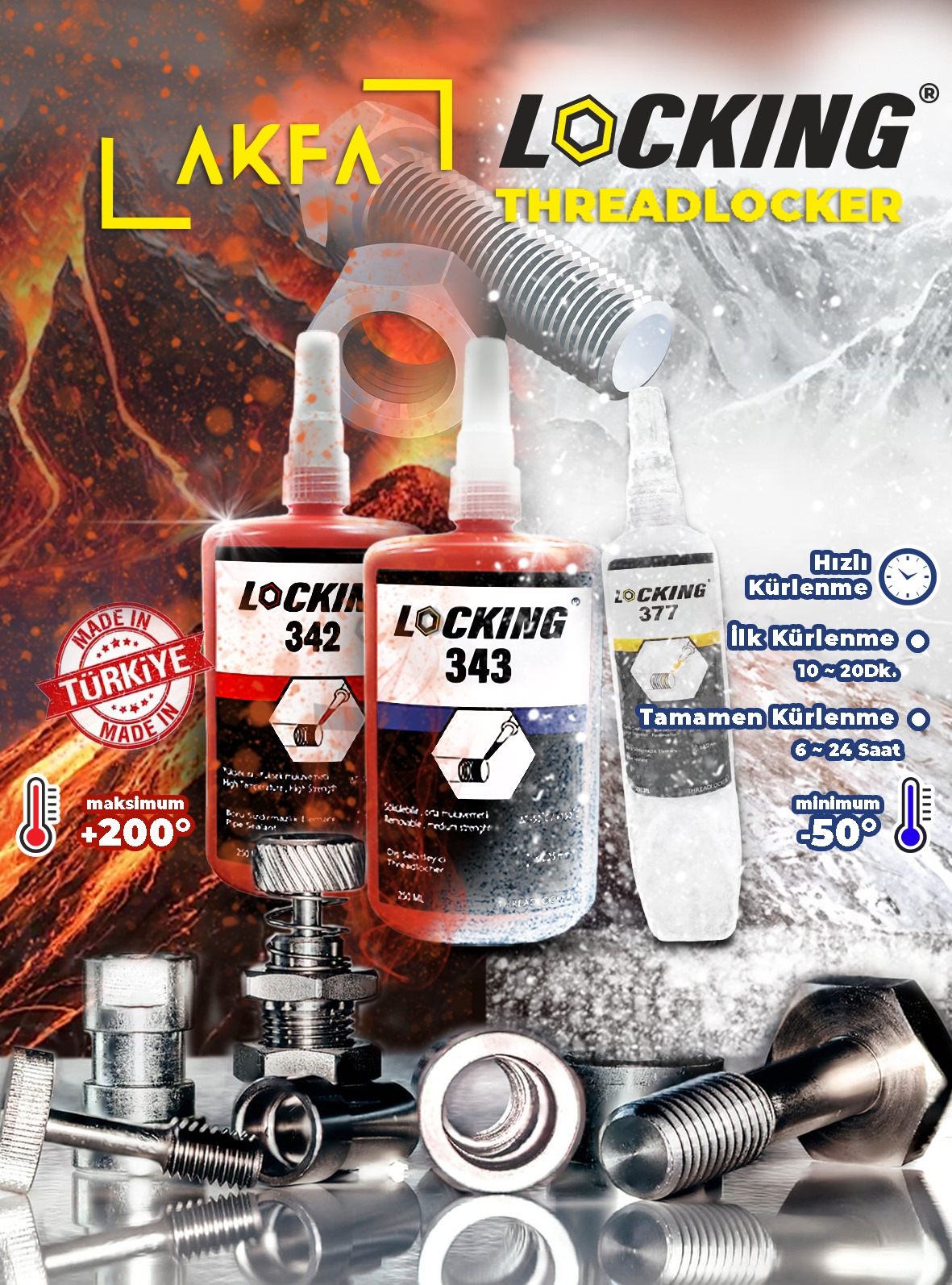 Locking markalı Anaerobik yapıştırıcı çeşitlerimizle doğalgaz ve sıhhi tesisat sektörüne boru sızdırmazlık ürünleri, hırdavat, otomotiv ve beyaz eşya sektörlerine rulman kenetleyici ve cıvata sabitleyici ürünler üretmekteyiz.