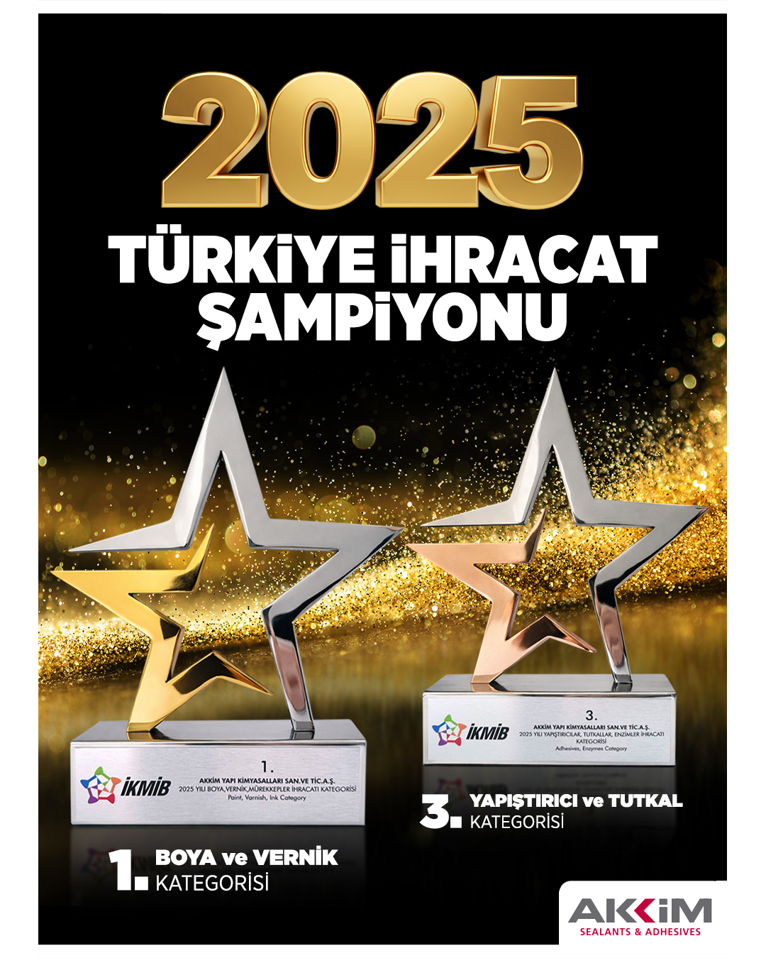 Akkim Yapı Kimyasalları, ihracattaki istikrarlı büyümesini bu yıl da İstanbul Kimyevi Maddeler ve Mamulleri İhracatçıları Birliği (İKMİB) “İhracatın Yıldızları” ödülleriyle taçlandırdı. Şirket, Boya, Vernik, Mürekkepler kategorisinde ise 1.’lik; Yapıştırıcılar, Tutkallar, Enzimler kategorisinde 3.’lük elde ederek sektöründeki güçlü konumunu bir kez daha ortaya koydu.