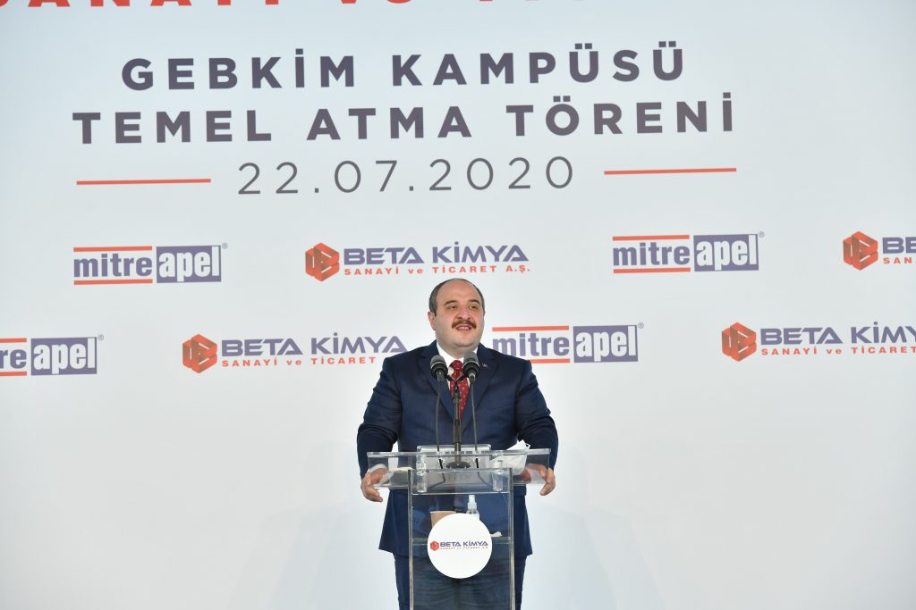 Orta Doğu ve Doğu Avrupa’nın en büyük yapıştırıcı ve tutkal üretim tesisinin temellerini atmak için bir arada olduklarını belirten Varank, “315 milyon liralık yatırımla hayat bulacak Beta Kimya GEBKİM Kampüsü, 500 vatandaşımıza daha yeni istihdam imkanları oluşturacak. Sayın Cumhurbaşkanımızın takdirleriyle Bakanlığa geldiğimiz ilk günden itibaren milli teknoloji, güçlü sanayi vizyonunu ortaya koyduk. Attığımız her adımda bu vizyonu daha ileriye taşıyacak yeni politikalar geliştirmenin derdindeyiz. Yerlileşmeyi teşvik eden, firmalarımızı yeniliğe yönlendiren bir yaklaşımı reel sektöre hakim kılmaya çalışıyoruz. BETA Kimya A.Ş.’nin yeni entegre tesis yatırımıyla birlikte bugüne kadar ithal edilen poliüretan reaktif hotmelt yapıştırıcı ürünler ve farklı türevleri ilk defa Türkiye’de üretilmeye başlanacak. Böylece ambalaj, otomotiv, mobilya, inşaat, savunma ve havacılık sanayisinin önemli bir girdisi yurt içinden temin edilmiş olacak. Orta vadede 120 milyon dolarlık bir ithalatın önüne geçilecek. Yurt içi ihtiyaçlar karşılandıktan sonra elbette ihracat potansiyeli de değerlendirilecek. Bu fabrika, seri üretime geçtiğinde ülkemizin en modern üretim tesislerinden birisi olacak. Ülke sanayimize ve kimya sektörüne yeni bir yeni bir soluk getirecek BETA Kimya GEBKİM Kampüsü yatırımının hayırlı olmasını diliyor, başta BETA Kimya Yönetim Kurulu ve İKMİB Başkanı Adil Pelister olmak üzere emeği geçen herkesi gönülden tebrik ediyorum.” dedi.