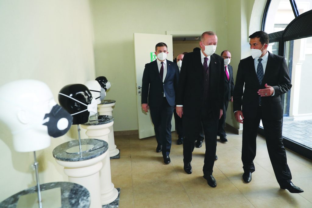 “Türkiye, salgın sürecinde vatandaşlarına ve iş dünyasına en fazla destek sağlayan ülkeler arasında yer alıyor. Dünyanın en gelişmiş ülkelerinin dahi maske savaşına tutuştuğu, solunum cihazı kıtlığının çekildiği, yaşlı bakımevlerinin adeta morga dönüştüğü bir dönemde biz, birinci sınıf sağlık hizmetini insanımıza ücretsiz sunduk. Sağlık alanında acil ihtiyaç duyulan ürünlerin tedarikinden başlayarak birçok konuda hızlı ve etkili çözümler ürettik. Uluslararası piyasalardan temin edilmesi zora giren maske, koruyucu ekipman, eldiven ve solunum cihazı gibi ürünlerin yerli ve millî imkânlarla üretimine yönelik projeleri hızlandırdık” diyen Cumhurbaşkanı Erdoğan;