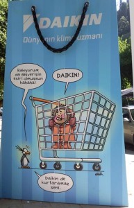9-29 Haziran 2012 tarihleri arasında gerçekleşen İstanbul Shopping Fest (ISF) kapsamında şehrin caddelerini şenlendiren dev çantalarda yerini alan Daikin, Erdil Yaşaroğlu karikatürleriyle festival ruhunu yansıtıyor.