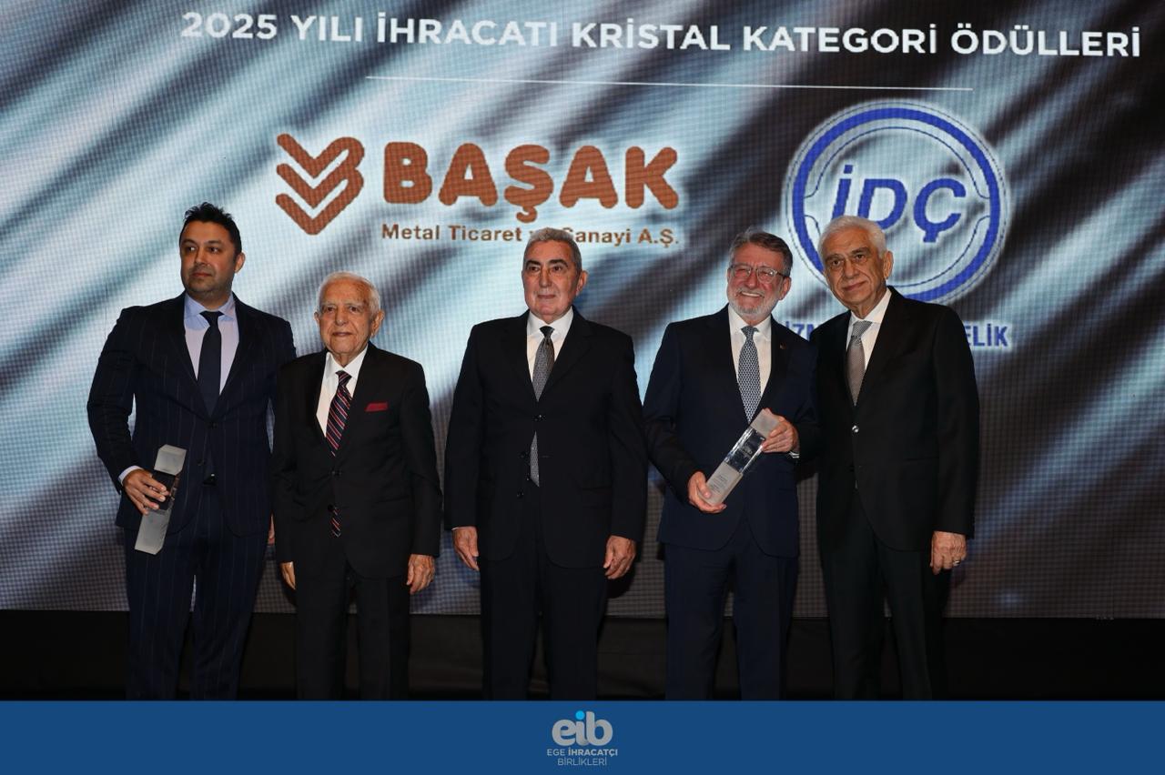Ege Bölgesi’nde ihracat şampiyonluğunu 8 yıldır sürdüren, 2025 yılında Türkiye’ye 2,6 milyar dolar döviz kazandırarak 39 yıllık tarihinin en yüksek ihracat rakamına ulaşan Ege Demir ve Demirdışı Metaller İhracatçıları Birliği, ihracat rekoruna en büyük katkıyı sağlayan ve 2025 yılında 2 milyar doların üzerinde ihracata imza atan 29 firmaya 5 kategoride 36 ödül verdi.