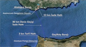 Orman ve Su İşleri Bakanlığı’ndan yapılan açıklamaya göre Yüksek Yoğunluklu Polietilen boruların imalatı için kurulan tesiste imal edilecek bir borunun çapı 1.6 metre, yekpare uzunluğu 500 metre, ağırlığı basınç sınıfına göre 148 ton ile 183 ton arasında olacak. Proje, boru üretim tesis ve teknolojisi ile de örnek teşkil edecek. KKTC Su Temin Projesi, deniz dibindeki basınç düzeyinin borularla su aktarımı imkansız kılması sebebiyle, özel bir teknikle inşa edilecek. 80 bin 151 metre uzunluğundaki boru hattı deniz dibinden değil 250 metre derinlikte kurulacak askılarla KKTC’ye su taşıyacak. Anamur-Dragon Çayı üzerinde inşası devam eden Alaköprü Barajı’ndan alınacak yıllık 75 milyon metreküp su, deniz altındaki boru hattı ile KKTC’de Girne yakınlarındaki halen inşa edilmekte olan Geçitköy Barajı’na aktarılacak.