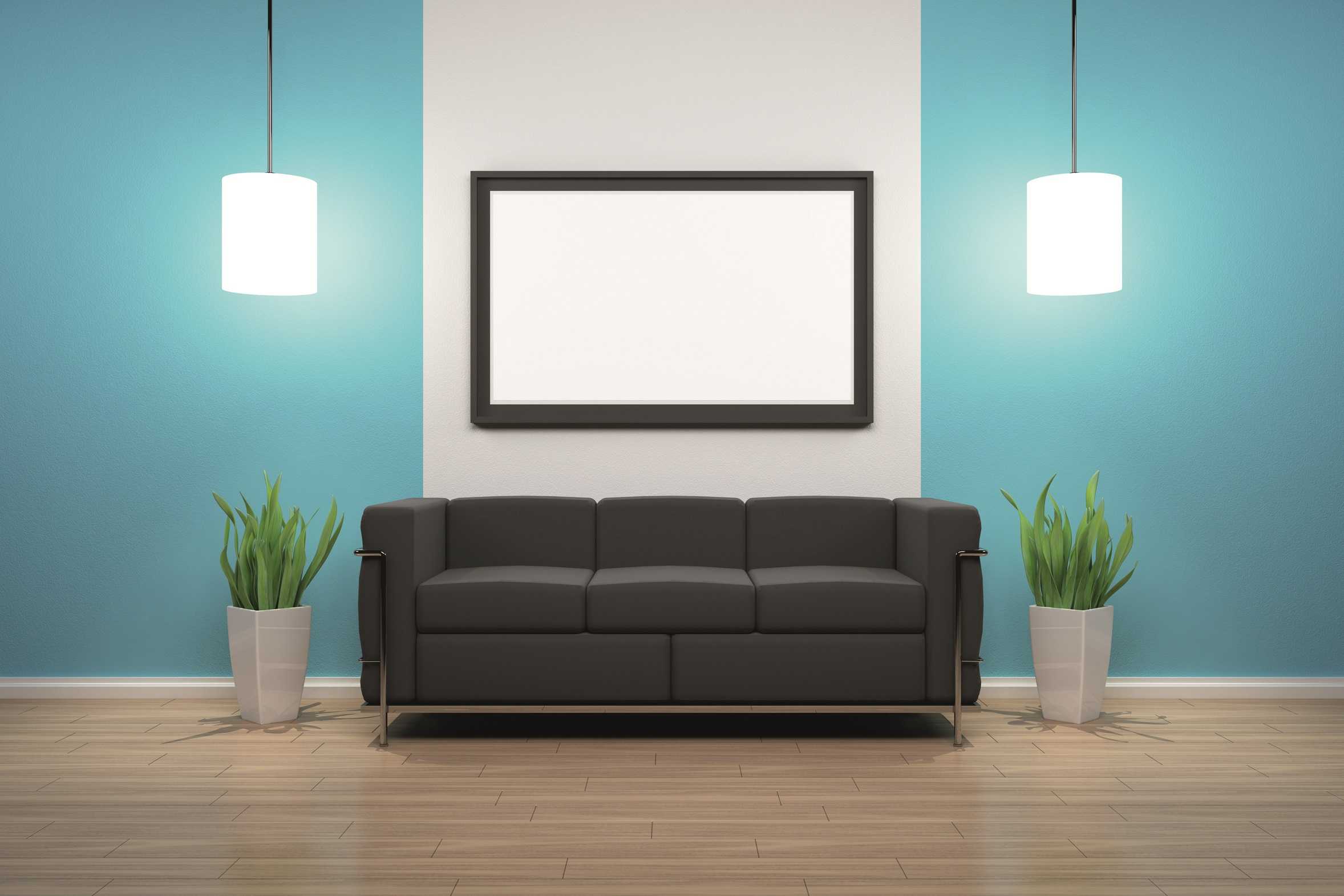 Bilderrahmen mit Sofa und blauer Wand