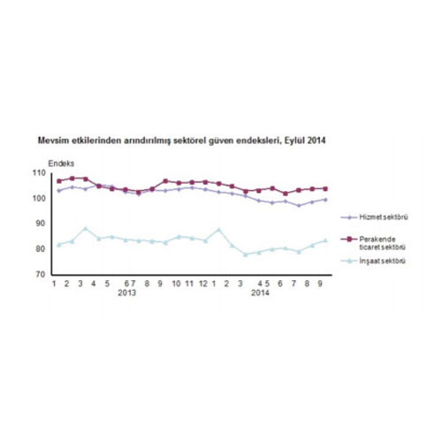rtacağını bekleyen girişim yöneticisi sayısı ise arttı. Perakende ticaret sektöründe bir önceki aya göre; iş hacmi-satışlar endeksi %0,9 ve mevcut mal stok seviyesi endeksi %4,5 azalırken, iş hacmi-satışlar beklentisi endeksi %2,4 arttı. Mevsim etkilerinden arındırılmış inşaat sektörü güven endeksi %1,8 arttı Bir önceki ayda; 82,2 olan inşaat sektörü güven endeksi, Eylül ayında 83,6 değerine yükseldi. İnşaat sektörü güven endeksindeki artış; alınan kayıtlı siparişlerin mevcut düzeyinin mevsim normallerinin üzerinde olduğunu değerlendiren ve gelecek üç aylık dönemde toplam çalışan sayısının artacağını bekleyen girişim yöneticisi sayısının artmasından kaynaklandı. İnşaat sektöründe bir önceki aya göre; alınan kayıtlı siparişlerin mevcut düzeyi endeksi %2,8 ve toplam çalışan sayısı beklentisi endeksi %1,1 arttı.