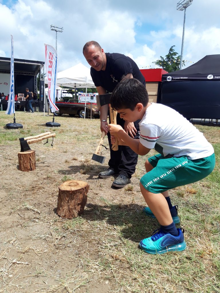 İZELTAŞ tarafından kütüklerle alanda yaratılan doğal ortamda kullanıcılar, nacakları deneme şansı buldu.