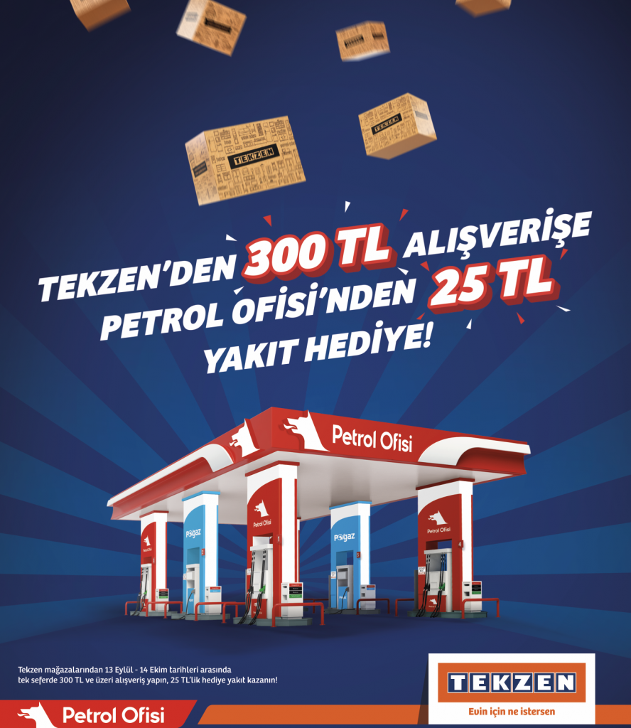 Türkiye’nin en yaygın ev güzelleştirme merkezi Tekzen ile Türkiye akaryakıt, madeni yağlar ve kimyasallar sektörünün önemli markası Petrol Ofisi işbirliğiyle düzenlenen kampanya, tüketicilere harcarken kazandırıyor. Tekzen’de tek seferde 300 TL ve üzeri alışveriş yapanlar, Petrol Ofisi’nden 25 TL değerinde yakıt puanı kazanıyor.