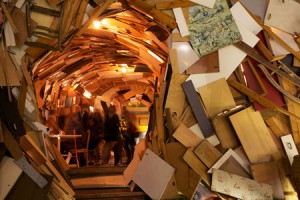 Alman Raumlabor mimarlık şirketi, eski sandalye, buzdolabı ve tahta parçalarından tiyatro binası inşa etti.