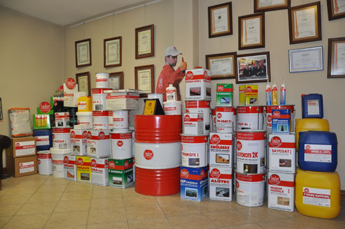 9 farklı ürün grubunda yaklaşık 100 adet ürünümüz bulunmaktadır. Ayrıca fason (private label) müşterilerimiz de bulunmaktadır. Güçlü bir Araştırma Geliştirme ve Üretim Geliştirmeye sahibiz. Müşterilerimizin talepleri üzerine, niş projeler geliştirerek, özel ürünler üretmekteyiz. Ürün gruplarımız, Bitümlü Likit Su Yalıtım Malzemeleri, Derz Dolgu ve Sızdırmazlık Ürünleri, Harç Katkıları, Çimento Esaslı Yalıtım Malzemeleri, Su Yalıtım Membranları, Renkli ve Şeffaf Su Yalıtım Malzemeleri